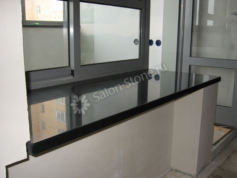 Глянцевый подоконник черного цвета из искусственного камня