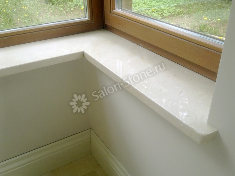 Угловой подоконник белого оттенка из кварцевого агломерата
